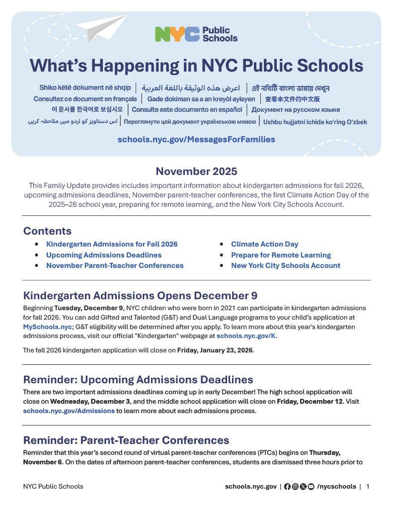 November New York City Public Schools Update